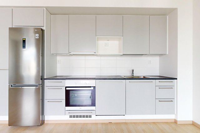 - VARUSTUS: Induktioliesi, Erillisuuni, Liesikupu, Hana, Kaapisto, Allas, Astianpesukone, Jääkaappipakastin. TYÖTASO: Laminaatti. LATTIA: Parketti. SEINÄT: Välitila laatta. Maalattu.