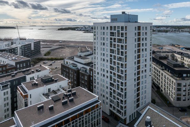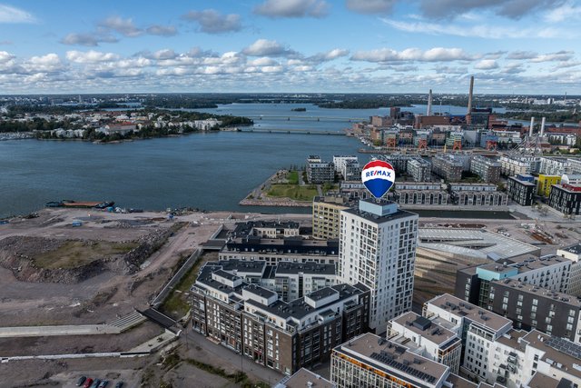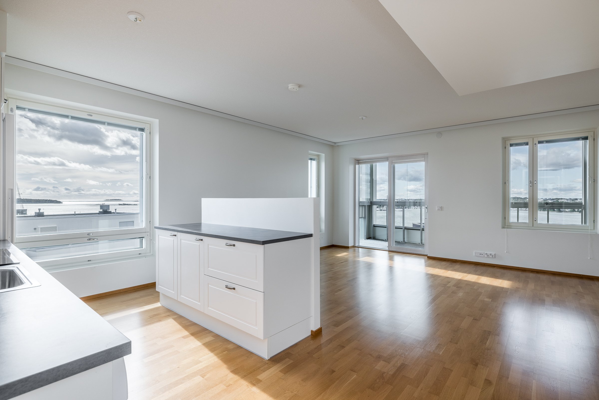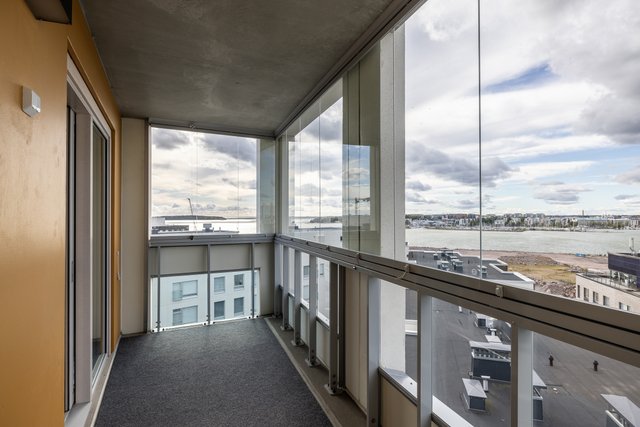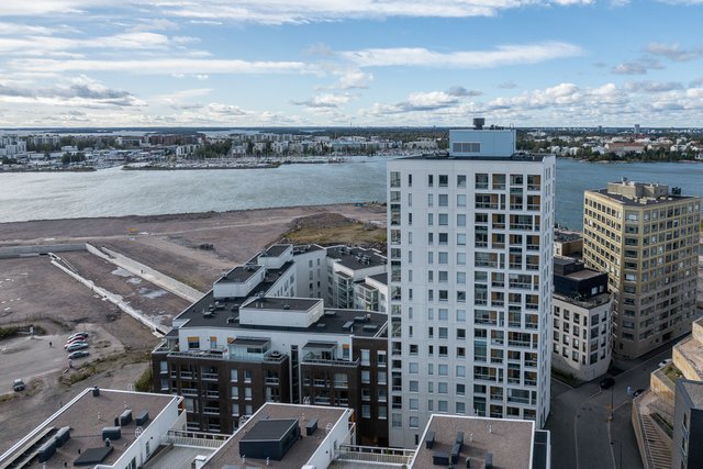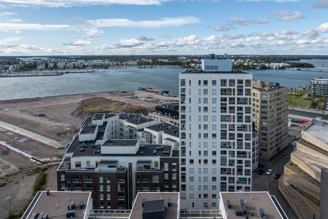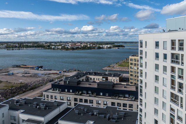 Tämä valoisa ja moderni kulmahuoneistokaksio sijaitsee Jätkäsaaren merellisessä kaupunginosassa, joka on tunnettu erinomaisista liikenneyhteyksistään ja kauniista merimaisemistaan. Asunto sijaitsee yhdeksännessä kerroksessa, ja sieltä avautuvat upeat näkymät merelle kaikista huoneista sekä parvekkeelta.