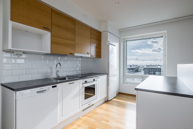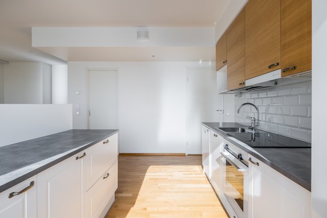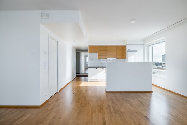 Asunnon avokeittiö ja tilava olohuone luovat avaran ja viihtyisän oleskelutilan, jossa on helppo viihdyttää vieraita tai rentoutua omassa rauhassa. Tyylikäs keittiö on varustettu laadukkailla Siemensin kodinkoneilla ja tarjoaa käytännöllisyyttä arkeen. Kylpyhuoneen lattialämmitys tuo mukavuutta, ja sieltä löytyy myös tilavaraus pesutornille.