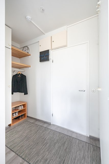 - Eteisessä säilytystilaa kaapistoissa ja naulakossa.