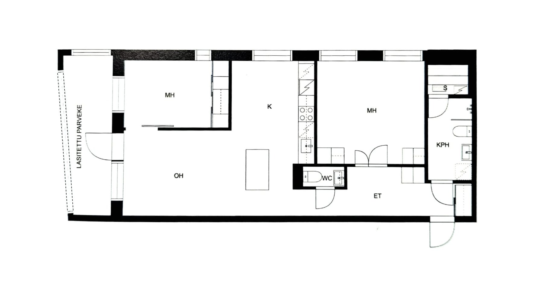 3h, avok, kph, s, parveke (mahdollisuus 4h,avok,kph,s,p)