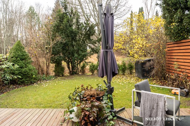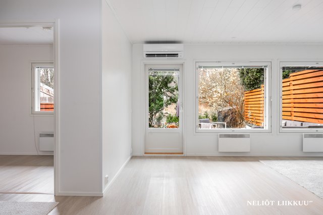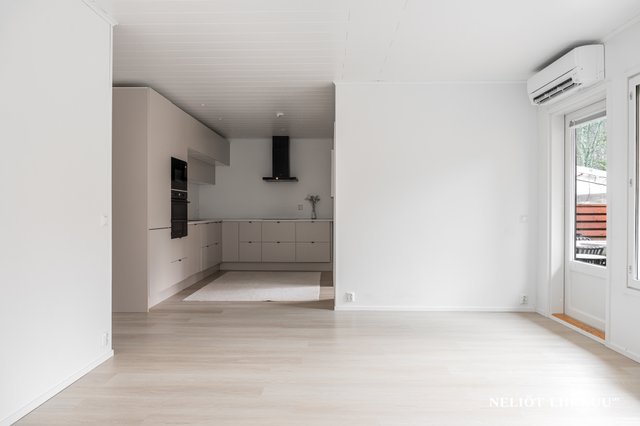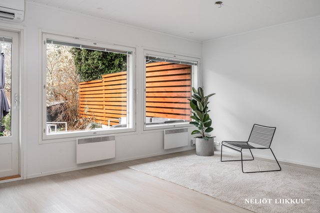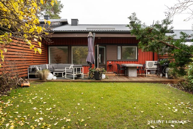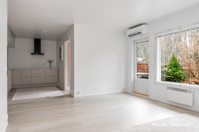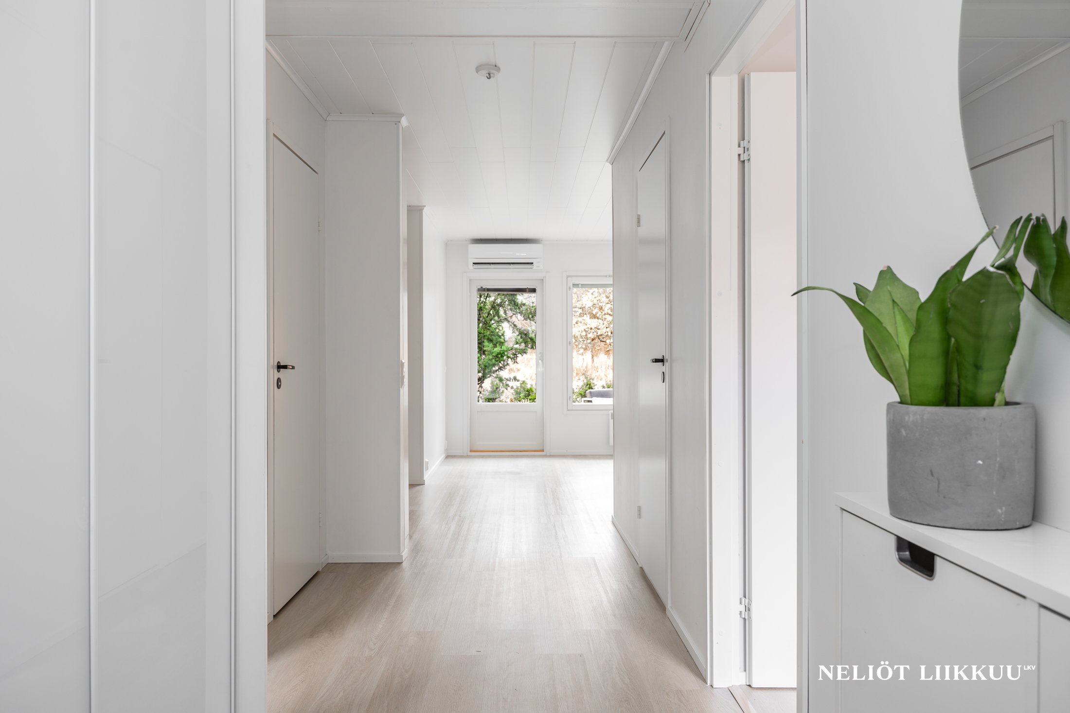 - Vehreät näkymät takapihalle. Seinät maalattu, lattia uusittu, valaistus uusittu, sähköt uusittu. Kattopaneelit uusittu. Olohuoneessa laadukas Mitzubishin ilmalämpöpumppu (lämmitys + viilennys). Ilman suodatustoiminto.