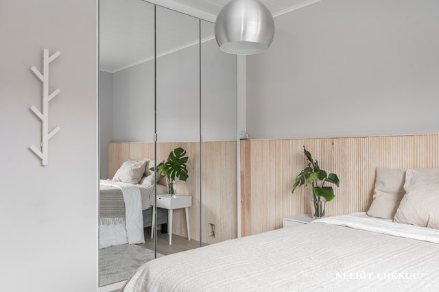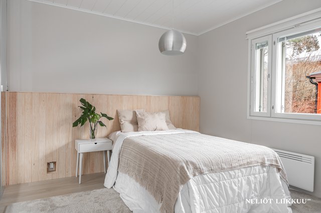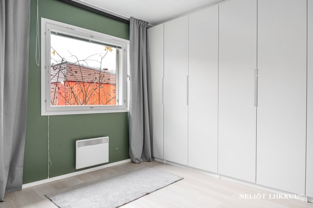 - Kolme makuuhuonetta. Lattiat uusittu, seinät maalattu, kattopaneelit uusittu, sähköt uusittu. Säilytyskalusteet.