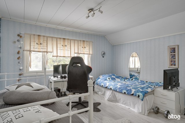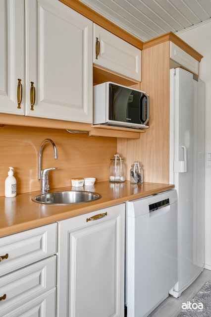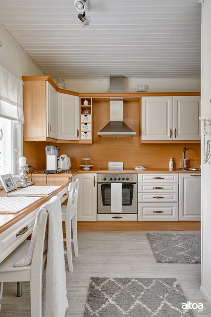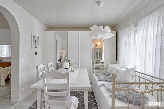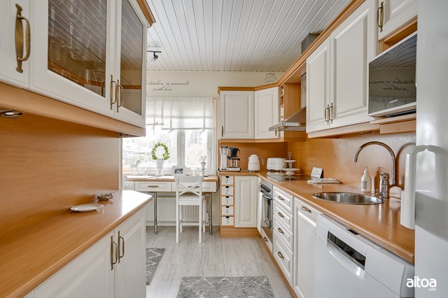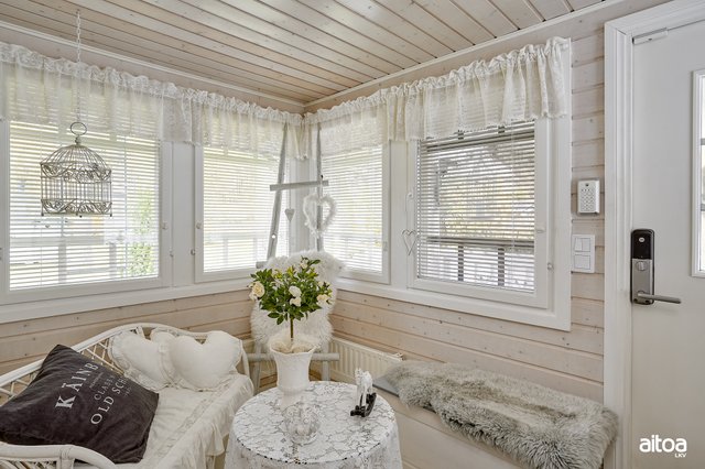 - Ruokahuoneen kiinteä kaapisto. Eteisen peiliovikaapisto. Älylukko. Pyykinkuivausteline pihalla.