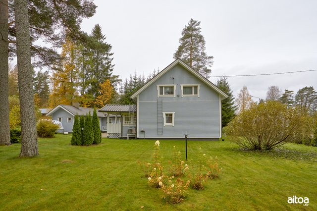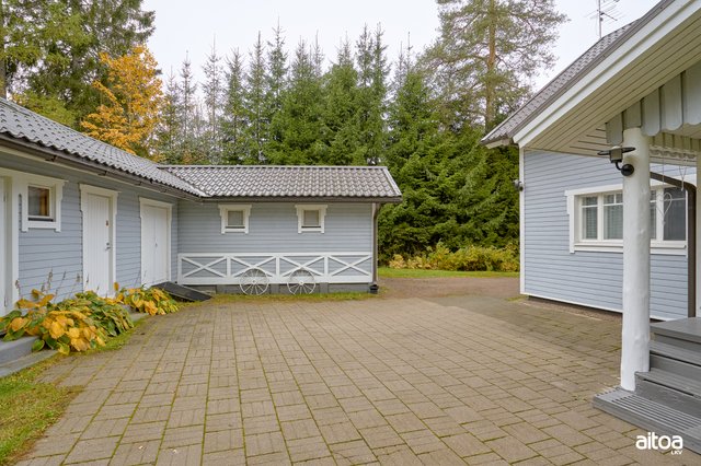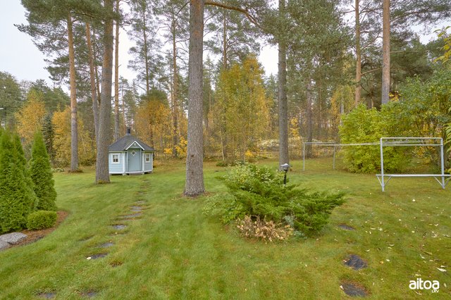 Pihapiiri on tasainen ja hyvin hoidettu, ja sieltä löytyy monipuoliset varastotilat, leikkimökki sekä tunnelmallinen grillikota. Varaston yhteydessä olevan pihasaunankin saat käyttöön kunnostamalla. Tämä kokonaisuus on täydellinen valinta sinulle, joka arvostat rauhallista ympäristöä ja aktiivista elämäntapaa, sekä ihanan rouhean romanttista tunnelmaa.