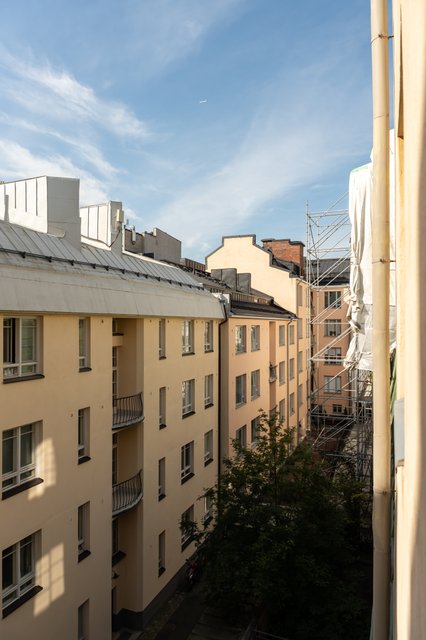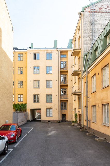 Alue tarjoaa monipuoliset palvelut aivan kotiovelta: ravintolat, kahvilat, kivijalkaliikkeet ja päivittäistavarakaupat ovat kävelymatkan päässä. Liikenneyhteydet ovat hyvät - raitiovaunu- ja bussipysäkit löytyvät läheltä, ja Kampin metroasema on lyhyen kävelymatkan etäisyydellä. Samalla alueella on kuitenkin myös vehreyttä ja rauhaa; sisäpihat luovat suojaisia ja hiljaisia kulmia keskellä kaupunkia. Tässä kodissa yhdistyy urbaani sijainti ja yllättävä rauhallisuus.
