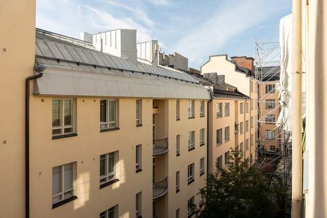 Asunto sijaitsee 4. kerroksessa. Sijainnista huolimatta koti on rauhallinen, sillä ääniä ulkoa ei juuri kuulu. Taloyhtiö sijaitsee omalla tontilla.