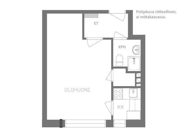 - Isännöitsijäntodistuksen mukainen, (Pinta-ala ei ole tarkistusmitattu ja todellinen pinta-ala voi olla suurempi tai pienempi, kuin ilmoitettu)
