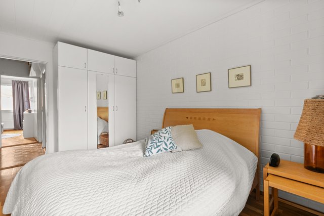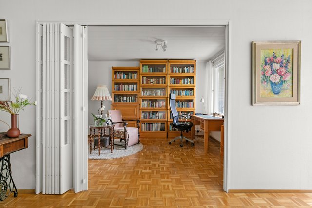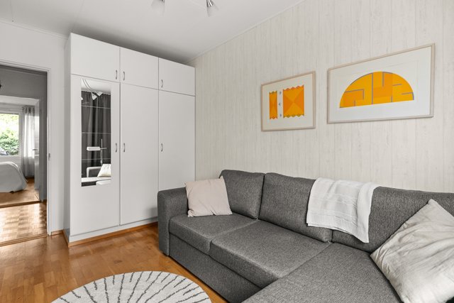 - Kaikissa kolmessa makuuhuoneessa vaatekaapistot. Yksi makuuhuoneista sijaitsee olohuoneen vierellä ja toimii tällä hetkellä kirjasto/työhuoneena. 2021 kahteen makuuhuoneeseen tehty remonttia (katto ja seinät maalattu/tapetoitu).