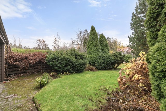 Puutarhasuunnittelijan käsialaa oleva piha on aidattu ja yksityinen, ja se on täydellinen paikka lasten leikkeihin tai koiran ulkoilutukseen. Pihalla kasvaa vanhoja marjapensaita, hedelmäpuita ja ikivihreitä puita, jotka tuovat vehreyttä ympäri vuoden.