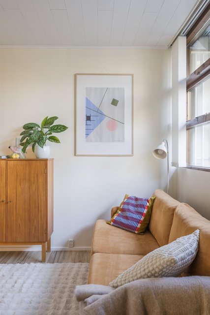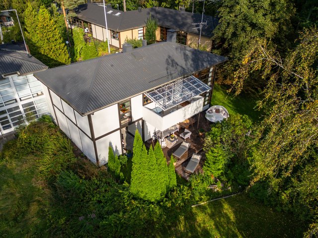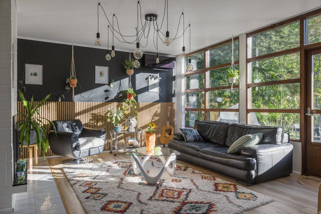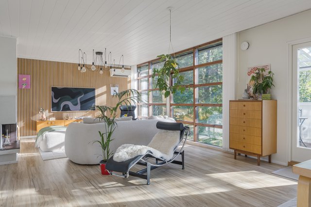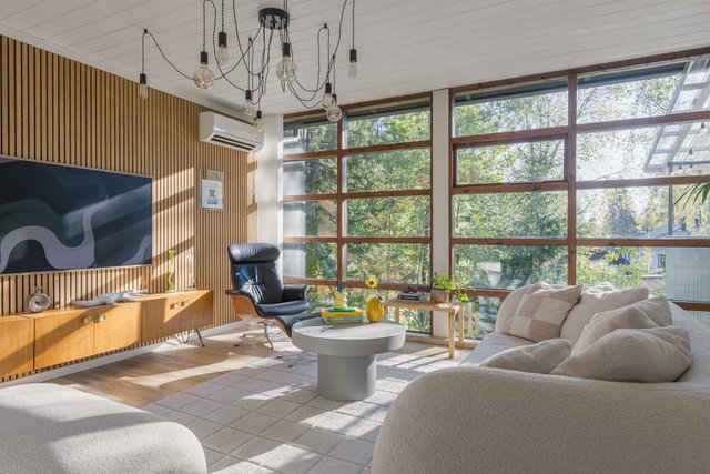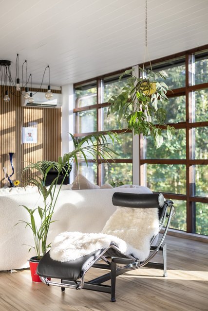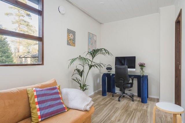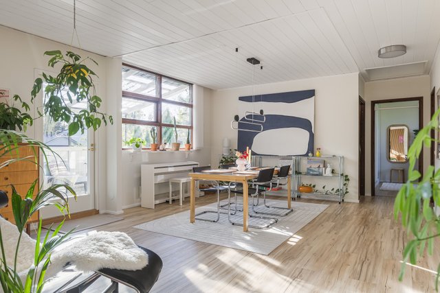 - Takallinen olohuone on osa suurta ja valoisaa oleskelualuetta. Tilassa yhdistyvät avaruus, kauneus ja rauhallisen lämpimät sävyt, jotka tekevät siitä aidosti kutsuvan. Suuret ikkunat tulvivat valoa sisään ja tuovat luonnon osaksi sisustusta – vuodenaikojen vaihtelut näkyvät upeasti sisätiloissa. Lattialla on tyylikäs vinyylipinta, ja yksi seinistä on viimeistelty akustiikkapaneelilla, joka lisää kodikkuutta. Myös kattoikkuna tuo luonnonvaloa tilaan! Olohuoneen kalustaminen on helppoa ja muunneltavaa: tila taipuu yhtä hyvin rennoksi oleskeluun kuin tyylikkääksi edustustilaksi. Oleskelutilasta on käynti katetulle parvekkeelle, jonne voit luoda viihtyisän kesähuoneen tai rentouttavan aamukahvipaikan. Lisämukavuutta tuo ilmanlämpöpumppu.