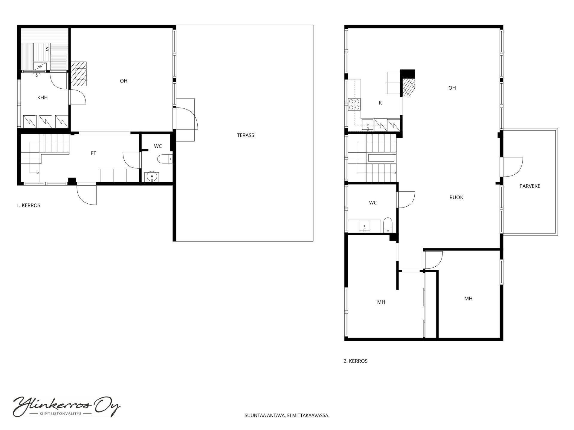 3-4 h, kph x2, s, wc x2, terassi, parveke, ulk.varasto x 2