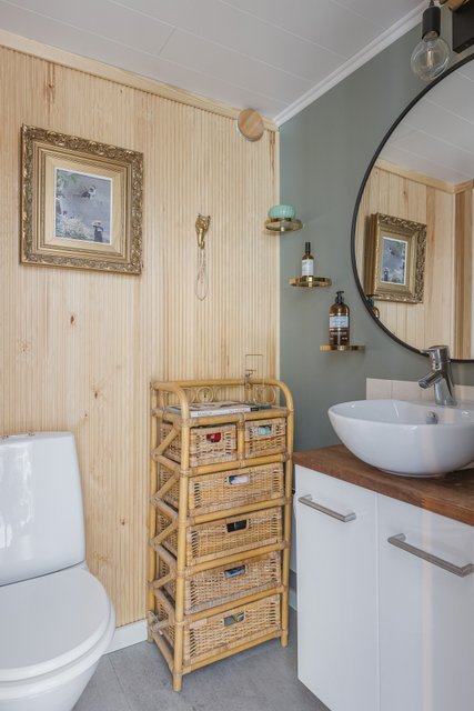 - Erilliswc sijaitsee alakerrassa, eteisen yhteydessä. Wc:n varusteina on wc-istuin, allaskaappi, allaskaluste sekä peili. Wc:n yksi seinistä on sormipaneelia.