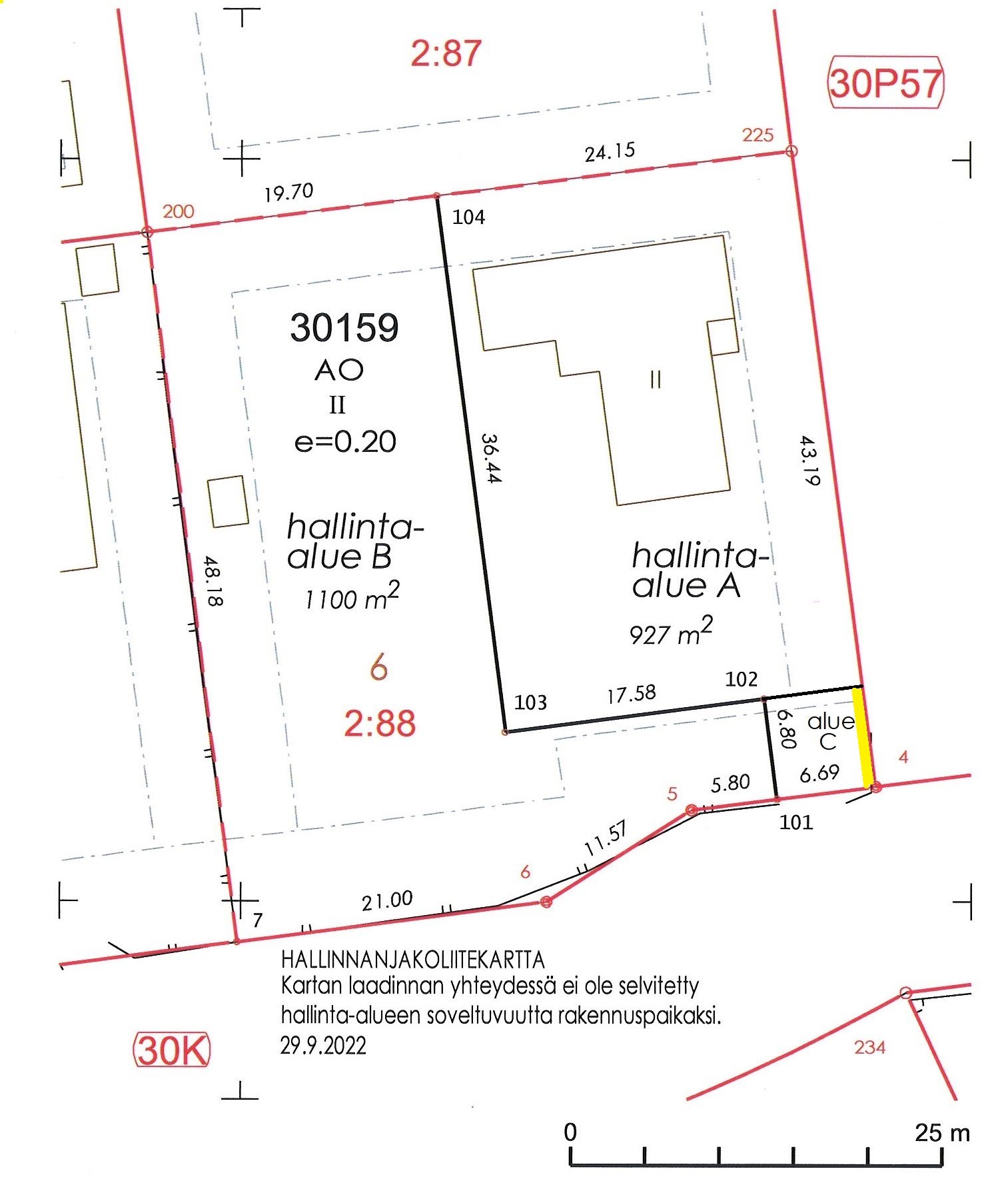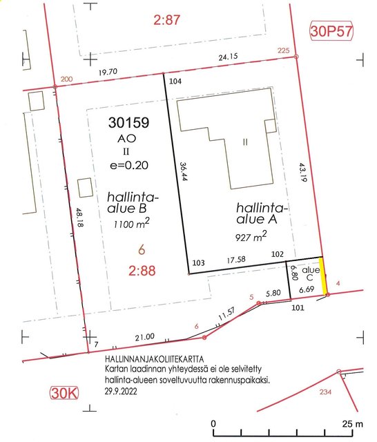 - Asemakaava, Asemakaava. AO, II, e=0,20, Erillispientalojen korttelialue, saa rakentaa kahteen kerrokseen.