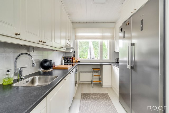 - Jääkaappi (2020), erillinen pakastin (2020), astianpesukone, liesituuletin (ohjaa lämmöntalteenottoa), liesi (induktio 2025), ja erillisuuni (2020)