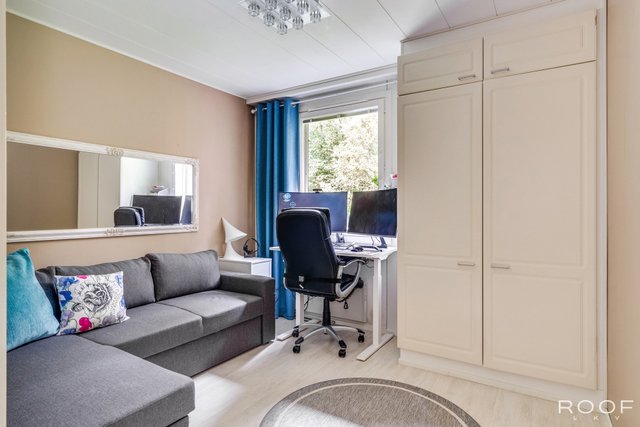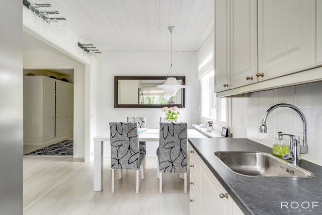 Huoneet ovat yhdessä tasossa, mikä tekee asumisen helpoksi niin lapsiperheille kuin ikääntyvillekin. Mukavuutta tuomassa ja lämmityskuluja kohtuullistamassa on ilmalämpöpumppu ja vuolukivitakka sekä koneellinen ilmanvaihto lämmöntalteenotolla. Sinulle, joka saunot paljon, löytyy saunasta Ainavalmis-kiuas, joten pääset tarvittaessa nopeastikin löylyttelemään. Valokuitu hoitaa nopean tietoliikenteen.