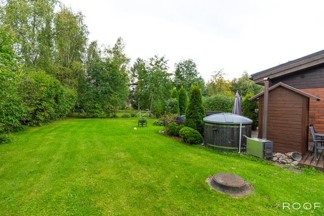 Erittäin tilavalla, hyvin hoidetulla ja suojaisalla piha-alueella voit rauhassa grillailla, pelailla lasten kanssa pihapelejä tai rentoutua paljussa.