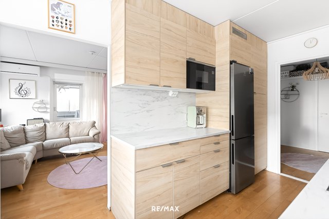Asunnon olohuoneessa ja makuuhuoneessa on parkettilattiat, jotka luovat lämpimän tunnelman. Keittiö on hyvin varusteltu, ja sieltä löytyy kaikki tarvittava arjen sujuvuuteen. Kylpyhuoneesta löytyy lattialämmitys ja pesukoneliitäntä.