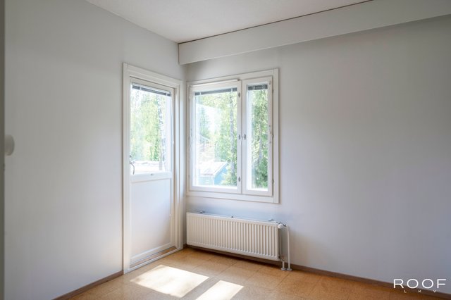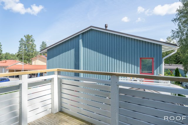 - Tilavat makuuhuoneet yläkerrassa, yhden makuuhuoneen yhteydessä parveke.