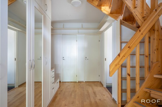 Tilava 99,5 neliömetrin paritalohuoneisto tarjoaa avaraa ja valoisaa asumista kahdessa kerroksessa.