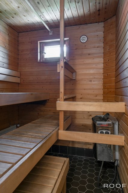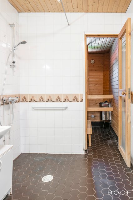 - Tilava pesuhuone johon mahtuu pesutorni hyvin.