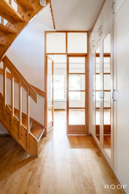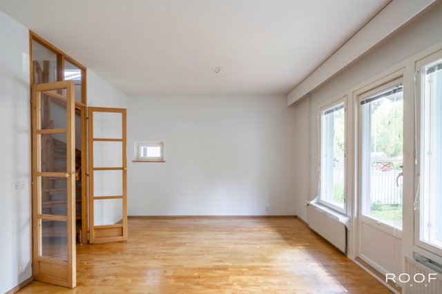 Yläkerrassa tilavat makuuhuoneet ja arjen toiminnot sijoittuvat alakertaan. Keittiö on oma kokonaisuutensa monipuolisine kotimaisine kaapistoineen ja uusittuine kodinkoneineen. Kaunis ja tilava eteinen, josta upeat puusepän tekemät lasiovet olohuoneeseen. Olohuoneesta on laaja näkymä suojaiselle ja aidatulle omalle takapihalle. WC molemmissa kerroksissa, sauna ja kylpyhuone yläkerrassa. Tilava vaatehuone. Kaksikerroksisuus antaa omaa rauhaa ja tilaa. Tilavat huoneet tekevät asumisesta miellyttävää kaikille perheenjäsenille. Taloyhtiössä on juuri valmistunut katto- ja ulkomaalausremontti, jonka yhteydessä kaksikerroksisten talojen päätylaudoitukset uusittiin. Taloyhtiö on rakennettu laadukkaasti perinteisellä tavalla, ei elementeistä kasaamalla. Yhtiöjärjestyksen mukaan huoneisto 4 h + k + s. Tämä koti tarjoaa tilaa ja toimivuutta perheille sekä luonnonläheistä asumista rauhallisella, perheiden suosimalla Hakuninmaan asuinalueella.