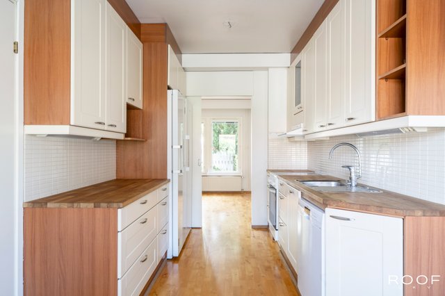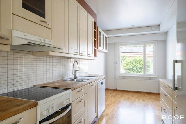 - Jääkaappi (Uusittu v. 2024), erillinen pakastin (Uusittu v. 2025), uuni, liesituuletin (Suodatin), ja astianpesukone (Uusittu v. 2024)
