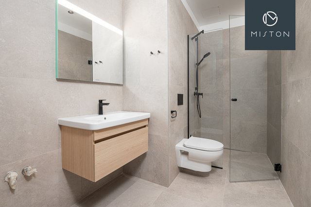 - Suihku, pesuallas, allaskaappi, suihkuseinä, ja peili