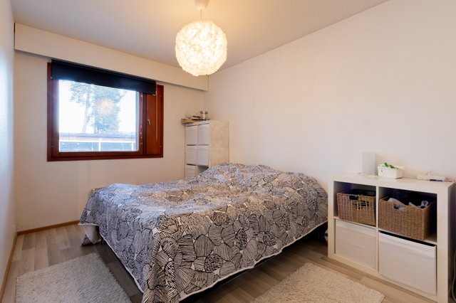 Tästä tilavasta kodista löydät kaiken mitä tarvitset viihtyäksesi kotona. Isokokoisessa makuuhuoneessa on runsaasti tilaa isommallekin sängylle, lisäksi huoneesta löytyy vaatehuone. Asuntoon on esteetön kulku.