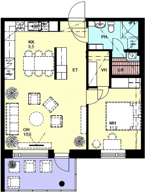 Myytävänä saunallinen kaksio, jossa parveke. Asunto on vuokrattu. Asunnossa parkettilattiat. Taloyhtiöllä on oma tontti.Pohjakuva