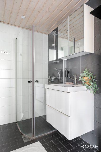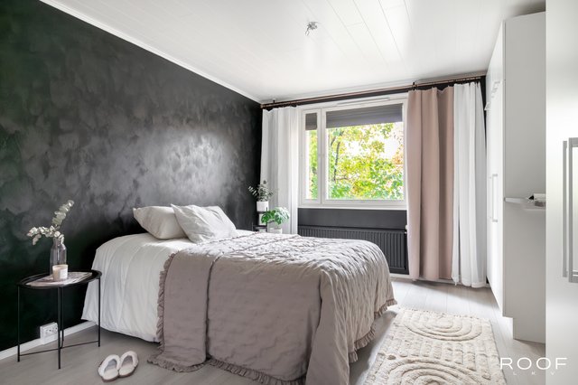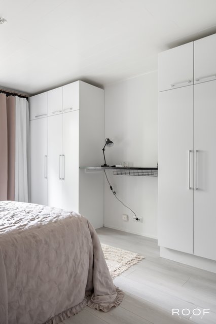 Vuonna 2015 remontoidussa kylpyhuoneessa on moderni seinä-wc sekä tila pyykinpesukoneelle. Makuuhuoneessa on lähes seinän levyinen kaapisto ja pimennysverhot, jotka takaavat rauhalliset yöunet. Eteiseen on lisätty kaappitilaa, mikä helpottaa arjen säilytysratkaisuja.