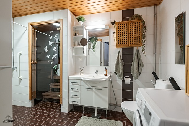 - Allaskaappi, suihku, pesukoneliitäntä, lattialämmitys, wc-istuin, peili, ja kiinteät valaisimet