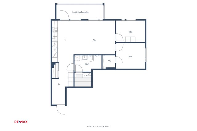 - -Jääkaappi -Pakastekaappi -Astianpesukone (integroitu) -Liesi (induktio) -Uuni -Liesiuuletin -Kaapistot -Mikroaaltouuni (integroitu) Lattia: parketti Seinät: maalattu