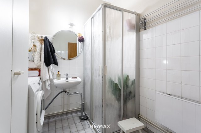- Suihku, pesukoneliitäntä, peili, pesuallas, ja suihkukaappi