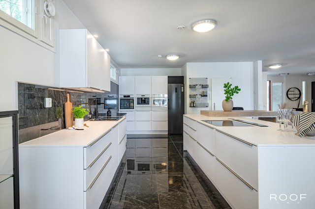 8h-avokeittiö, 2xkph, 2x wc, parvi, terassit, 2xautotalli ja rantasauna
