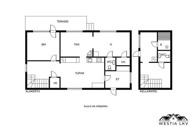 - Pesutila sijaitsee talon kellarikerroksessa jossa myös sauna.