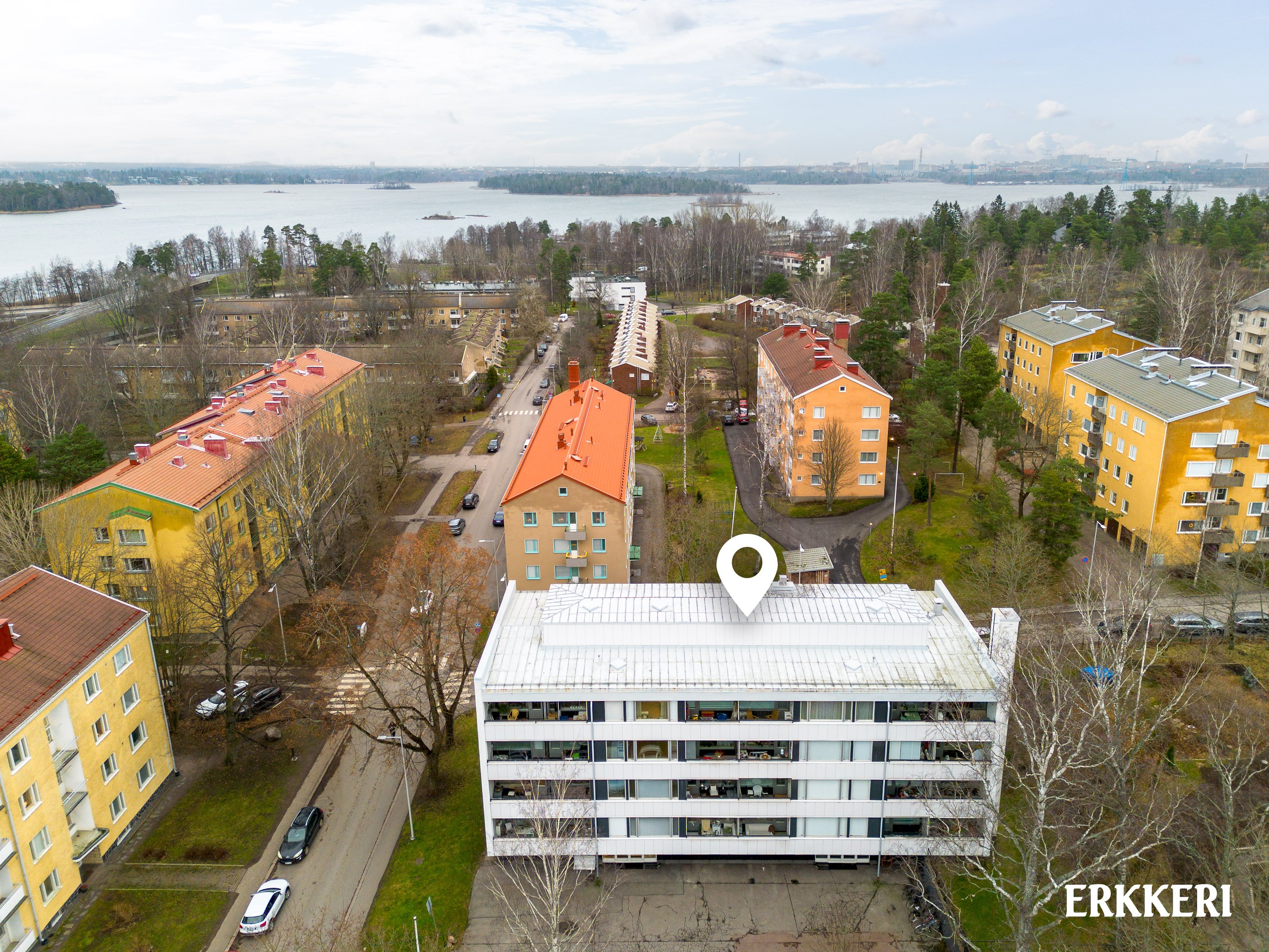 Asunto sijaitsee keskeisellä ja rauhallisella paikalla. Lauttasaaren kauppakeskukseen ja metroasemalle on vain 5 minuutin kävelymatka, joten liikkuminen on vaivatonta.