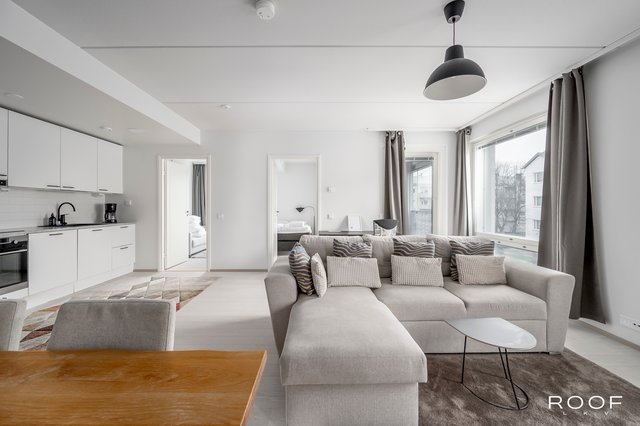 Valoisa ja toimivapohjainen koti vuonna 2023 valmistuneesta taloyhtiöstä. Tässä kodissa on kolme makuuhuonetta, olohuone ja keittiö yhtenäisenä tilana, oma sauna sekä lasitettu parveke. Olohuoneen suuret ikkunat tuovat tilaan valoa useasta suunnasta ja mahdollistavat joustavan kalustamisen niin oleskeluun kuin ruokailuun.