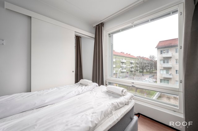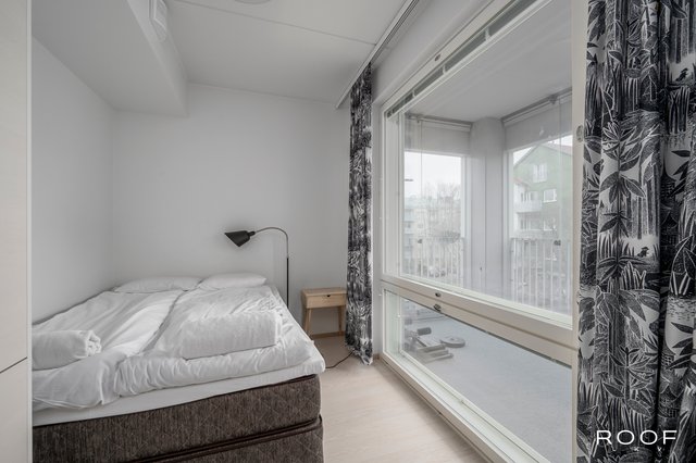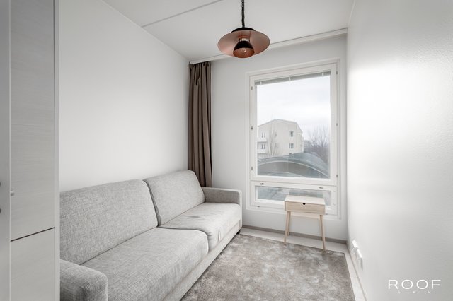 Kolme makuuhuonetta mahdollistavat monenlaiset käyttötarpeet - tarvittaessa yksi voi toimia vaikka työtilana etäpäiviin tai rauhallisena harrastehuoneena. Lasitettu parveke jatkaa oleskelutilaa pitkälle vuodenaikojen yli.