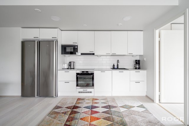 - Varustus: Induktioliesi, Liesituuletin, Uuni, Hana, Kaapisto, Allas, Astianpesukone, Jääkaappi, Pakastin, Integroitu mikroaaltouuni Seinämateriaali: Laatta Lattiamateriaali: Parketti