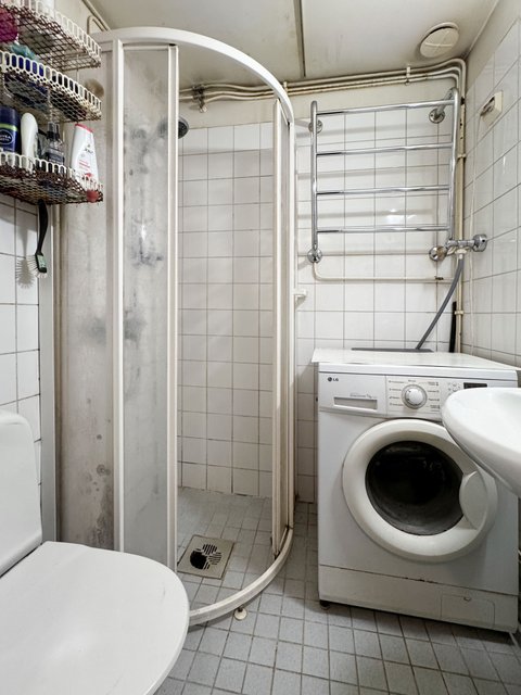 - Suihku, suihkukaappi, wc-istuin, käsisuihku, käsienpesuallas, peili, pkl, pyyhekuivain, laattalattia