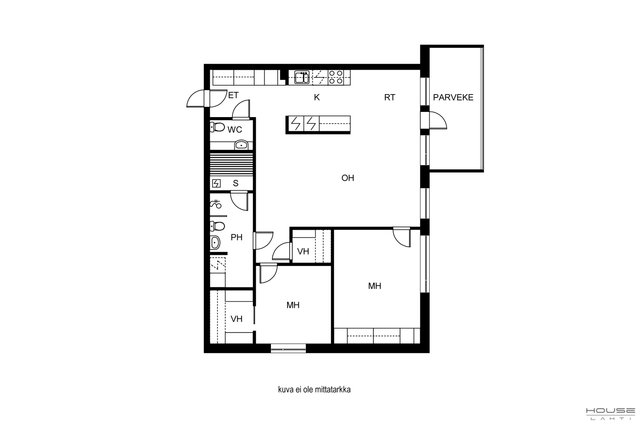 3h, k, wc, kph, s, 2xvh, lasitettu parveke