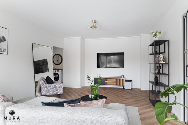 Tämä tyylikäs moderni huoneisto on vuonna 2018 läpikäynyt täydellisen muodonmuutoksen keittiötä, kosteita tiloja ja kaikkia pintoja myöden. Erittäin laadukkaassa mustassa keittiössä on integroidut koneet ja aamiaiskaappi. Lattiat on kaunista ja helppohoitoista kalanruotovinyylilankkua, kylpyhuoneessa tyylikkäät laatat ja sadesuihku. Olohuoneen erkkeri, leveät ikkunapenkit ja keittiön päätyseinän tiilipinta luovat oman tunnelmansa tähän ihanaan kotiin. Sijainti on huikea keskustan plaveluiden, Laukontorin sekä Pyynikin ulkoilumaastojen välittömässä läheisyydessä.