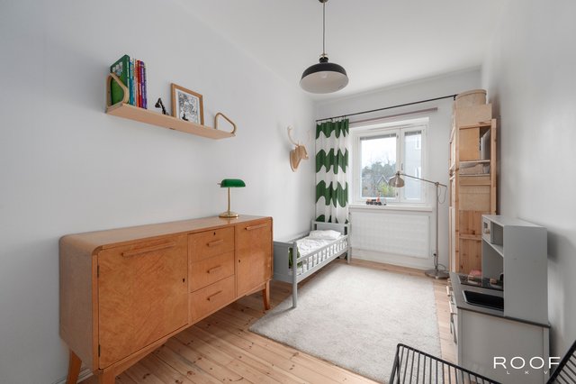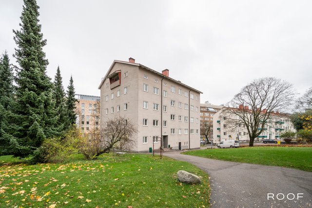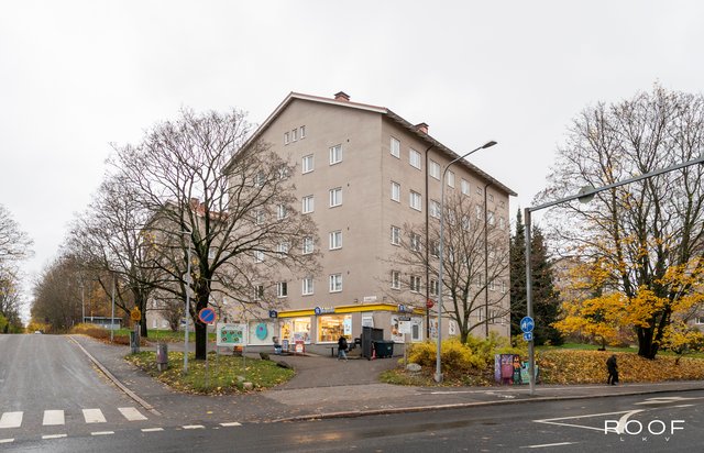Vuonna 1946 valmistuneessa kivitalossa toisessa kerroksessa sijaitseva kulmahuoneisto, jossa arjen sujuvuus korostuu selkeän pohjaratkaisun ja hyvän sijainnin ansiosta. Ikkunat avautuvat länteen ja pohjoiseen, mikä tuo asuntoon luonnonvaloa eri vuorokaudenaikoina.