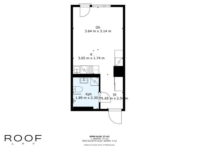 - Ei tarkistusmitattu. Pinta-ala voi siis olla edellä mainittua pienempi tai suurempi.