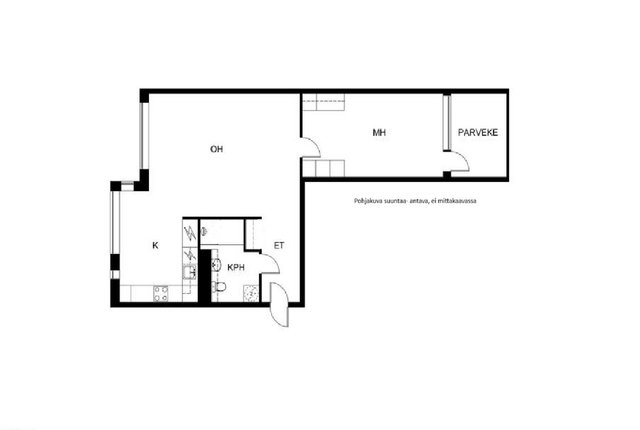 Pohjaratkaisu on toimiva ja tarjoaa paljon mahdollisuuksia. Keittiö on tilava ja tarjoaa runsaasti säilytystilaa sekä luontevan paikan ruokapöydälle. Olohuone kutsuu yhteiseen oleskeluun, ja makuuhuoneessa on hyvin tilaa myös työpisteelle. Asunto on siisti ja asiallisessa kunnossa, ja päivittämällä sen omaan tyyliin sopivaksi, siitä saa upean kodin vuosiksi eteenpäin.