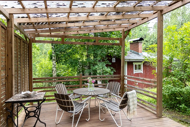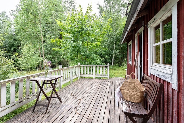 Toisessa rakennuksessa on puulämmitteinen sauna ja saunatupa, joka sopii hyvin esim vierasmökiksi. Rakennuksella on terassi, johon on kiva tulla vilvoitteleen löylyjen jälkeen.
