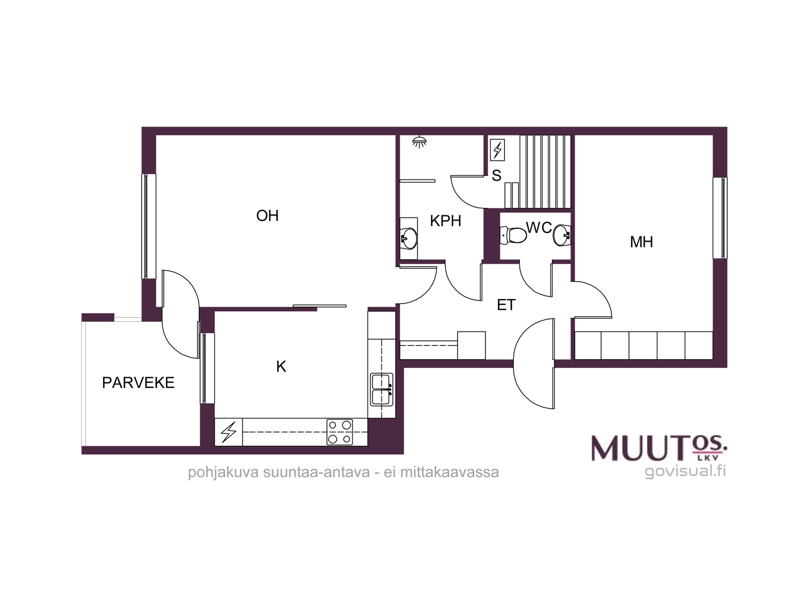 Asunnossa on tilava olohuone, erillinen makuuhuone sekä keittiö, joka tarjoaa hyvin säilytystilaa ja paikan ruokapöydälle. Asunnon kruunaa oma sauna ja erillinen wc, joka on harvinaista herkkua tämän kokoisissa asunnoissa. Lasitettu parveke tuo lisää asumismukavuutta ja toimii viihtyisänä lisätilana aikaisesta keväästä pitkälle syksyyn.