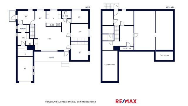 - Kellarissa säilytystilaa, tekninen tila, öljysäiliöt, verstas
