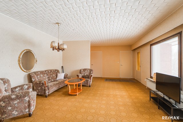 Asuinkerroksen lisäksi talosta löytyy paljon kellaritilaa säilytykseen tai verstastilaksi sekä autotalli. Iso olohuone kodin keskiössä, toisessa päädyssä kolme makuuhuonetta, sauna ja pesutilat toisessa.